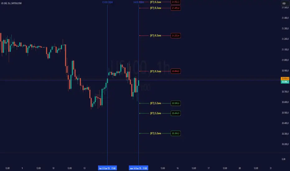 Estos son Zonas (Soportes y Resistancias) donde el precio puede tener una reacción para nuestra operativa de Scalping en 1 minuto.