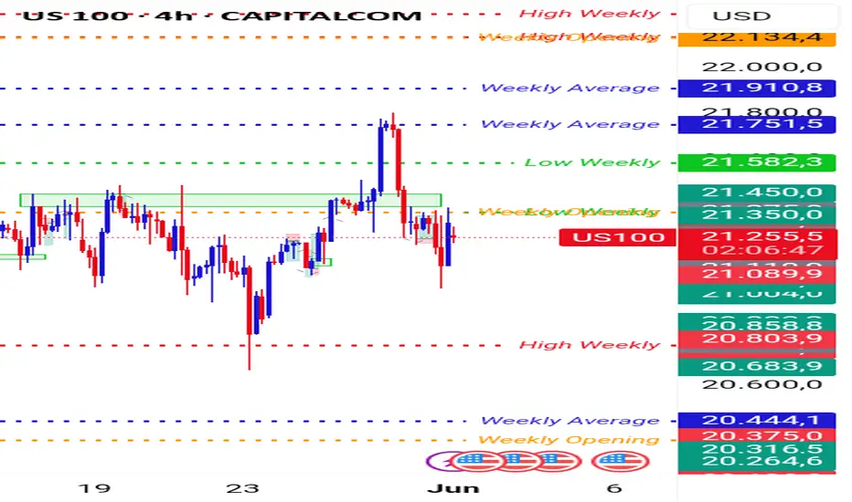 Bueno tenemos el Nasdaq100 ahora mismo en la zona de los 21250. Yo tengo una proyección de que el nasdaq va a volver a la zona de los 21120 a 21140 y vamos a tener un avance poderoso.... de ahí en adelante o quizás tengamos un desplome masivo de precio, un desplome masivo de precio y el mercado se hunda que no creo que suceda. porque por lo que estoy viendo todo está alcista btc está increíblemente en 100k y bueno estoy viendo que funciona el método de los niveles semanales de precio