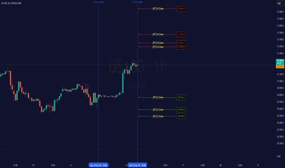 Estos son Zonas (Soportes y Resistancias) donde el precio puede tener una reacción para nuestra operativa de Scalping en 1 minuto.