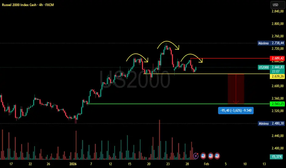 El precio cotiza actualmente en torno a 2.660, pero la gran vela bajista de alto volumen de la última sesione (28 de enero) representa un claro intento de ruptura bajista.