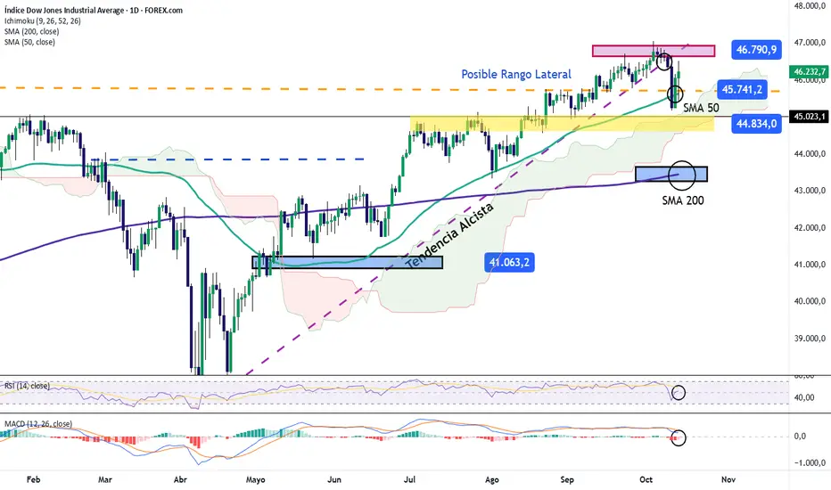 - 46,790 puntos – Resistencia máxima: Corresponde a la zona de máximos históricos del índice. Oscilaciones de compra que se acerquen o superen este nivel podrían reactivar la tendencia alcista y dar paso a un sesgo comprador dominante.