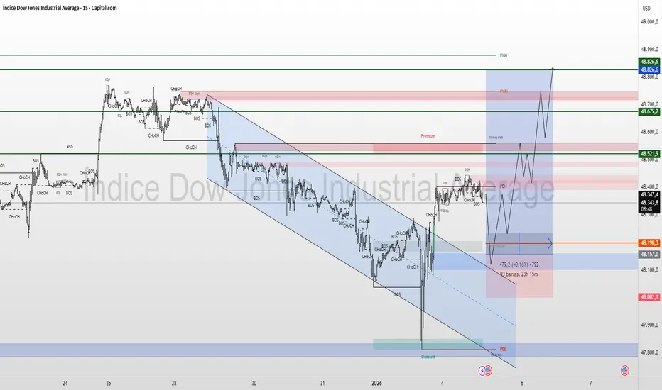 Buscamos un retroceso en el precio a la zona de los 48.239 aproximadamente para comenzar a buscar confirmaciones de largos que nos lleven a zonas de los 48.521, 48.675 y 48.826. SL por debajo de los 48.000