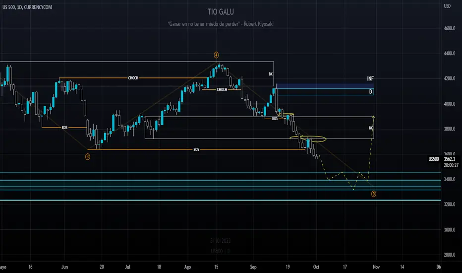 Proyección en temporalidad diaria del la direccionalidad del SP-500, y posible zona de reversal.