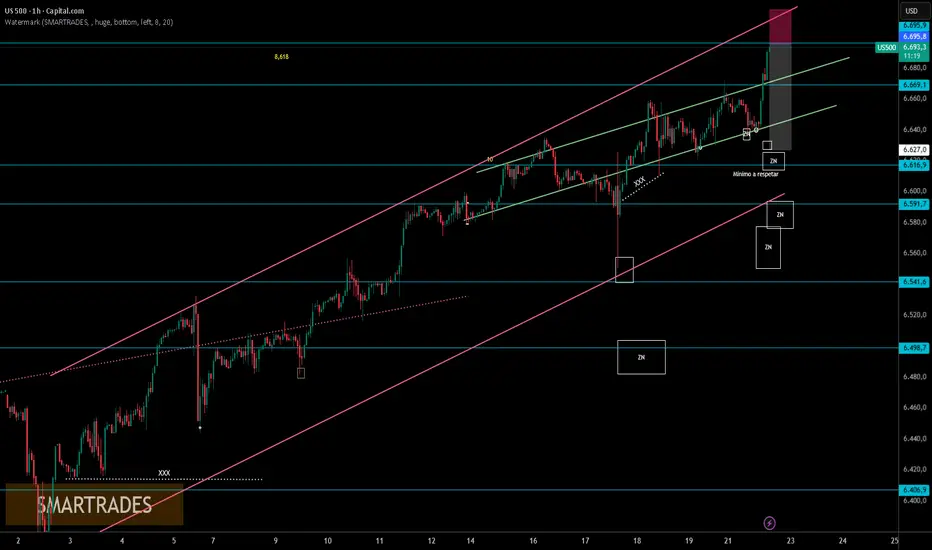 El techo del canal solo tocado una vez se encuentra en valores un poco por enciam de 6700. Creo que puede darse un retroceso antes de ese valor