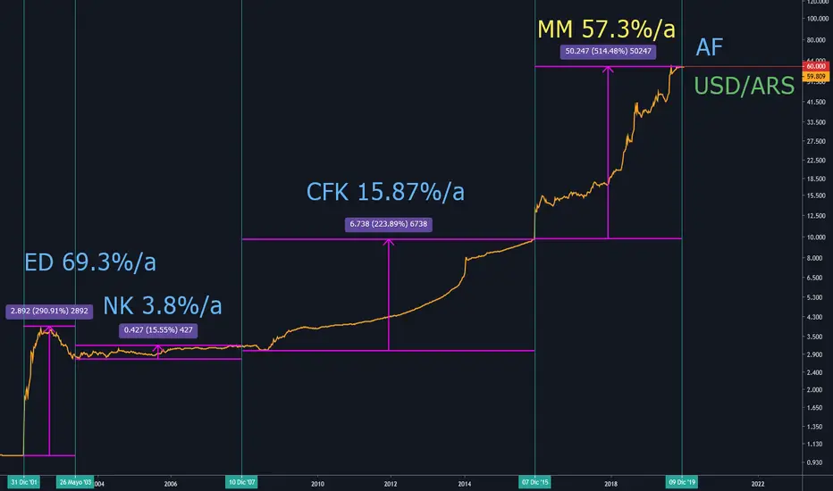 Velocidades de devaluación (en %/anual) del dólar mayorista por presidente