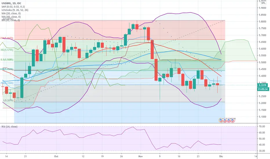 El dólar estadounidense ha estado luchando por consolidar una ruptura en la resistencia, el precio ha estado probando los niveles de soporte y resistencia encontrados en nuestros retrocesos de Fibonacci durante casi 3 semanas, parecía que el dólar estadounidense podría ganar algo de terreno pero el poder de los compradores no no ha sido suficiente para detener la tendencia bajista, aunque podemos ver que las bandas de Bollinger se están reduciendo, lo que generalmente significa que el precio está llegando a un punto de consolidación y podría haber un cambio de tendencia en el corto plazo, la tendencia general es a la baja, por lo que podría esperar una tendencia alcista pronto, tendríamos que esperar una confirmación de ruptura de otros indicadores.