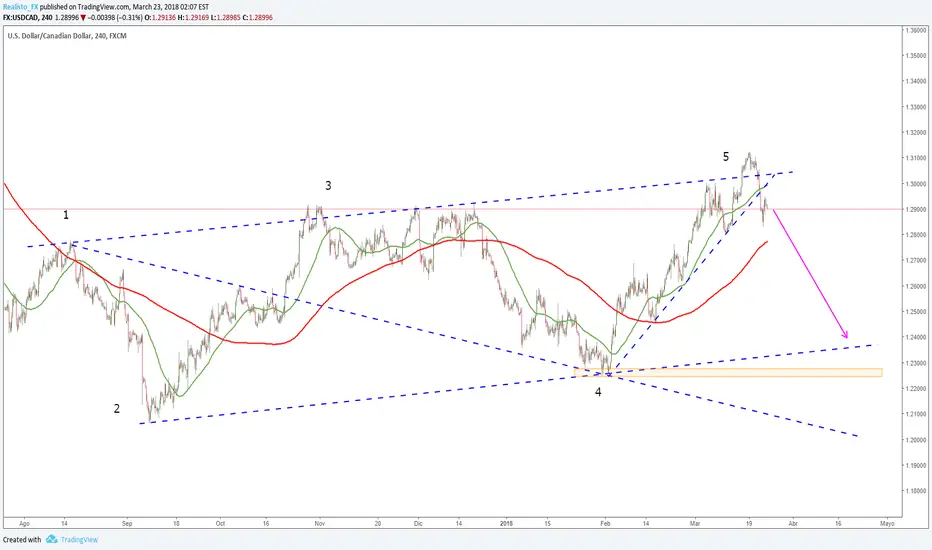USDCAD puede haber formado un patrón Wolfe de 5 ondas con posibilidades bajistas. Además ha roto una directriz alcista de las últimas sesiones.