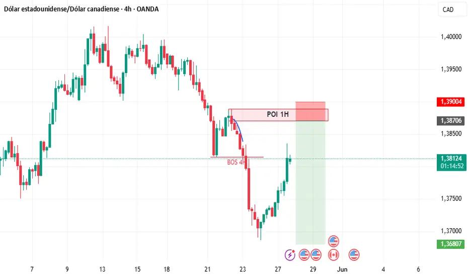 Precio rompe estructura en 4H y hay un POI en 1H el precio tiene liquidez previa lo que lo hace un buen punto para buscar ventas
