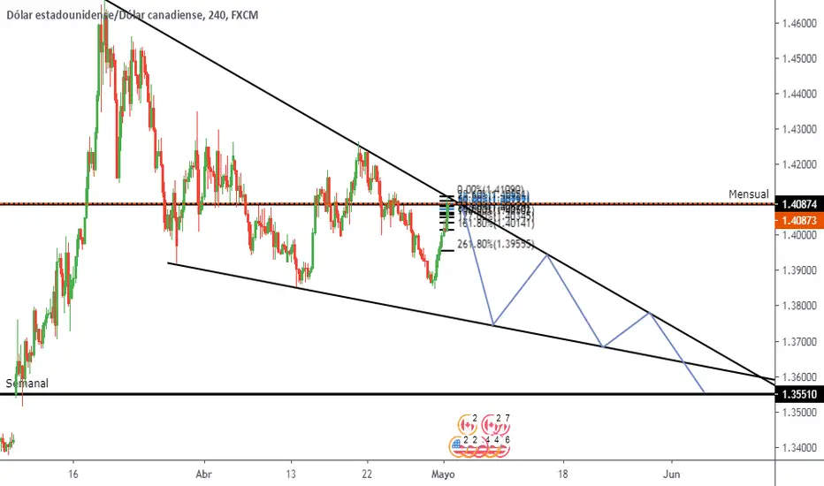 El usd cad lo veo en venta por que esta en una resistencia mensual se ve claro rechazo al alza a demas esta retesteando el 38 del fibo y lo veo llegando a la siguiente zona semanal