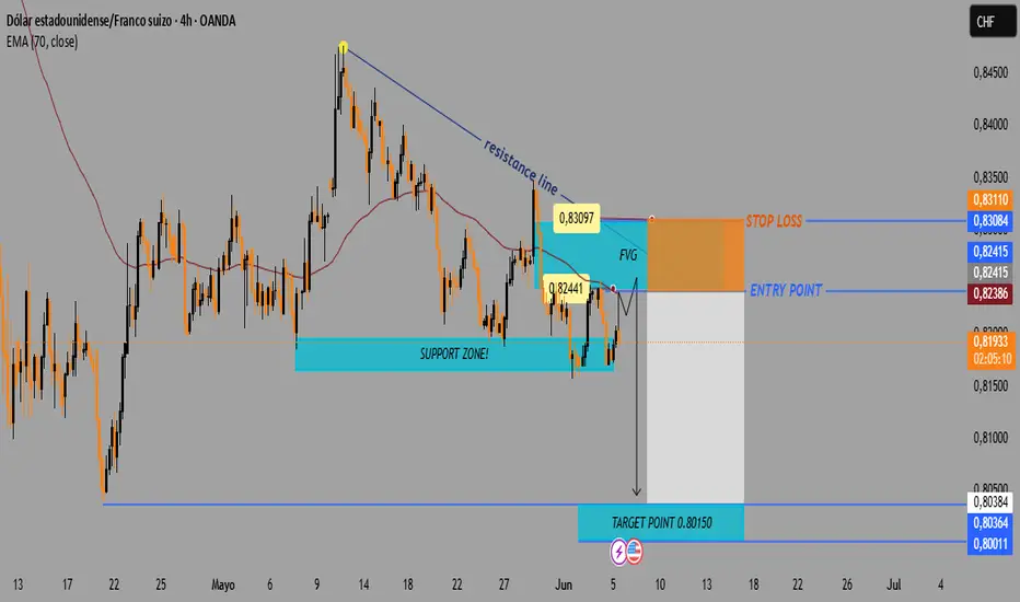 Setup de Venta para USD/CHF – Análisis Técnico 4H con FVG, EMA y
