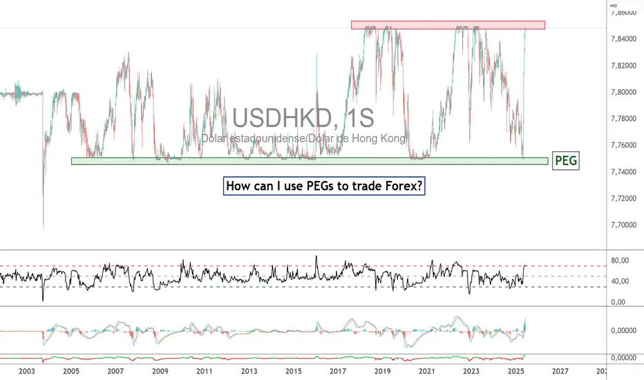 Algunos PEG utilizan una junta monetaria o banda de fluctuación, como el dólar de Hong Kong (HKD) mediante una banda de 7,75-7,85 HKD por USD. Este es el soporte que compartimos con ustedes el 6 de mayo, y la cotización repuntó con fuerza.