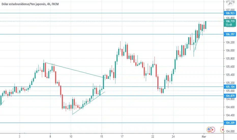 Se confirman compras en #USDJPY con un objetivo, por el momento, en 106.92