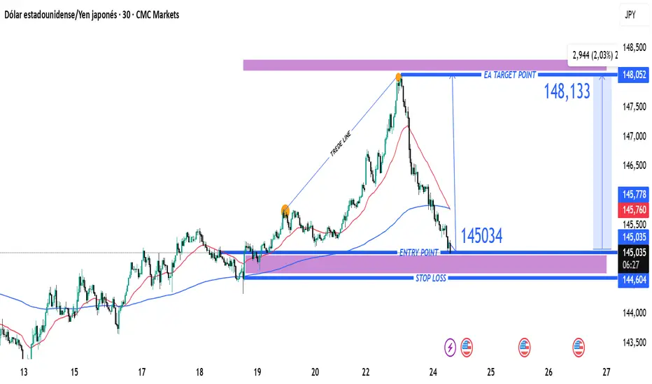 El gráfico sugiere que el precio podría rebotar desde la zona de 145.034, siendo esta una zona de soporte importante.
