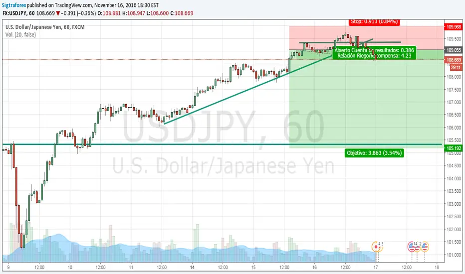 Rompimiento de tendencia, con vela envolvente confirmada entramos en venta, esperando una caída muy hermosa.