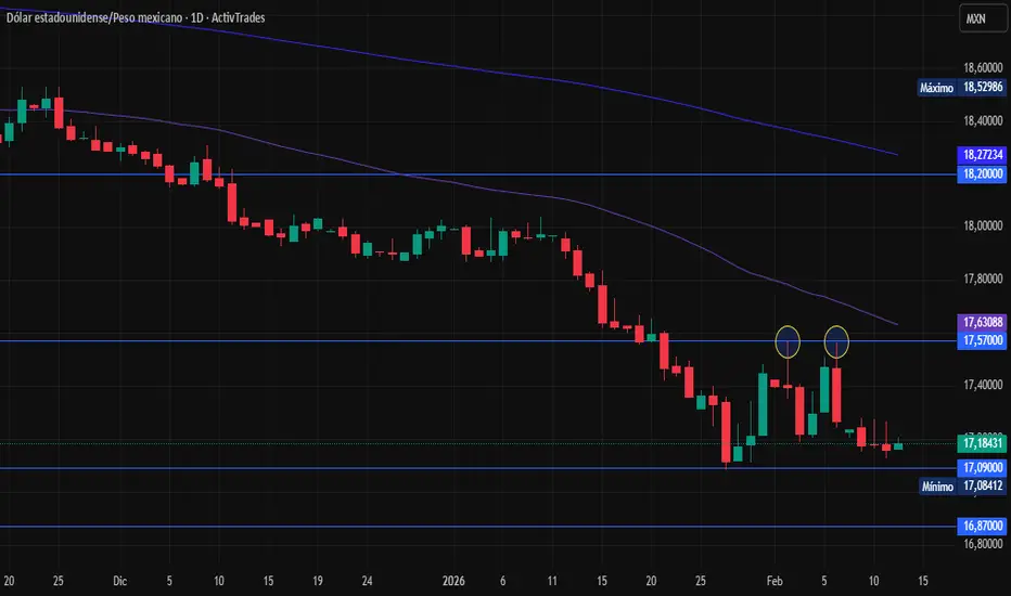 El dólar frente al peso mexicano viene cayendo sostenidamente desde febrero del año pasado, cuando registró un pico en el 21,29, hasta llegar a un mínimo en el 17,09, nivel que no visitaba desde junio del 2024.