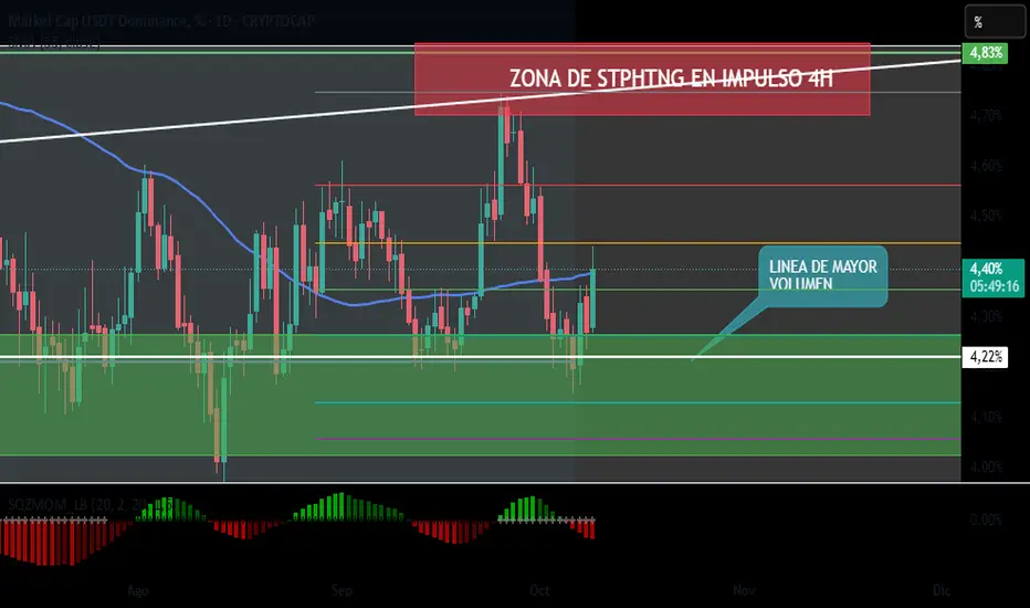 La dominancia de USDT, marcó el rumbo de una posible correción en btc y el resto del mercado cripto. Una vez llegando a mi zona, y confirmando el piso, fue que abrí los cuatro short en btc, más otras siete criptos que traigo con profits a la baja. De cerrar la vela diaria tal cual como está al momento, nos confirmaría la dominancia que seguirá subiendo y el mercado a su vez corrigiendo. Le daremos seguimiento para tomar la desición de dejar correr las posiciones un tiempo más o empezar a cerrar.