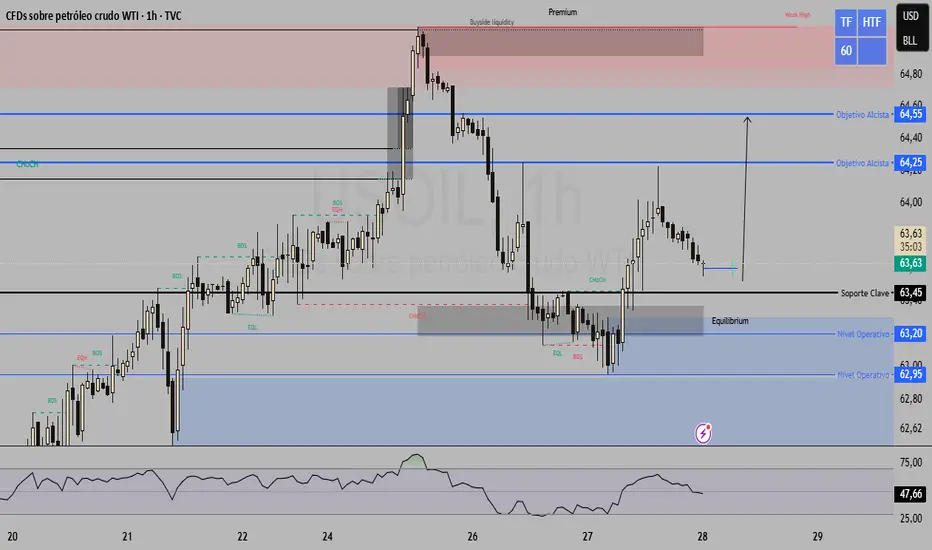 En caso de que el precio rompa por debajo de 63,45, se podría activar una corrección con proyecciones bajistas hacia 63,20 y 62,95.