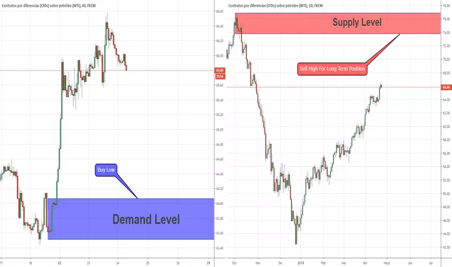 Como escuchamos hace 2 días, el presidente Donald Trump anunció sobre nuevas sanciones a Irán, que hacen que el precio del USO salga disparado y cree una nueva demanda, podemos ver esta nueva demanda en la tabla de 1 hora, que la demanda a continuación parece una gran continuación. nivel y compraré allí si el precio retrocede a la demanda, en el gráfico 1D podemos ver que el precio USOIL es alcista y probablemente seguirá siendo alcista hasta alcanzar la oferta anterior, esa oferta será el objetivo para la posición de compra y también Es un gran nivel para la posición de venta a largo plazo.