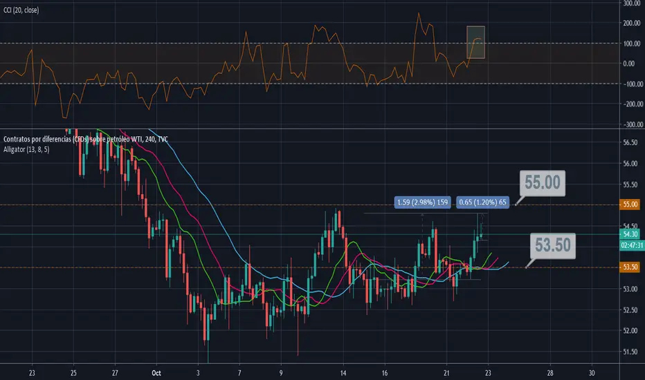 Así entonces, para las posiciones compradoras, se debe tener en cuenta el soporte en 55 dólares y la resistencia en 53,50.