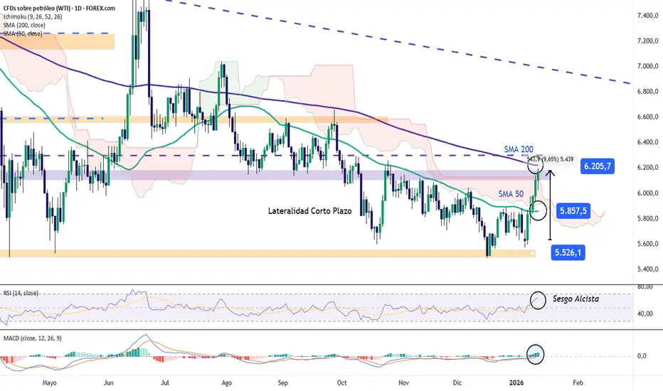 El RSI mantiene un comportamiento alcista, con oscilaciones por encima del nivel neutral de 50. Mientras el indicador no se acerque a la zona de sobrecompra marcada por el nivel de 70, este comportamiento sigue señalando una dominancia del impulso comprador, lo que podría continuar respaldando la presión alcista del WTI en el corto plazo.