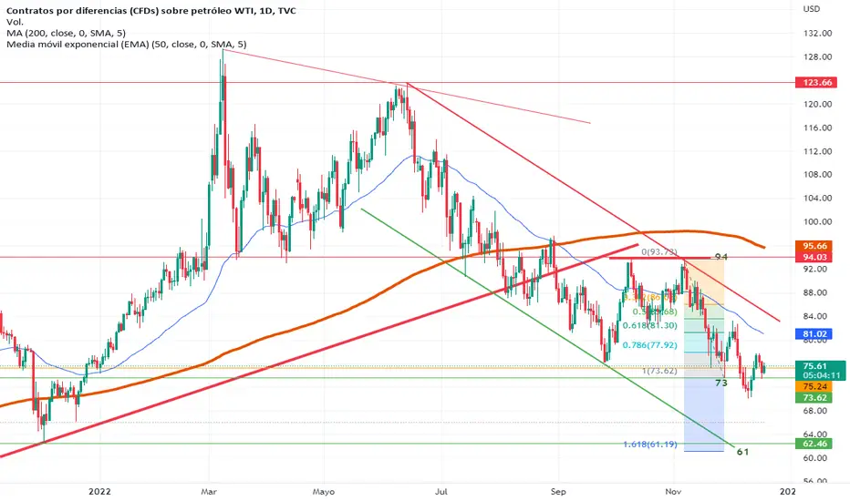 - Opera en la extensión del último swing de fibonacci con soporte alrededor de 73 y resistencia en 94. Extensión 1.618 alrededor de 61.