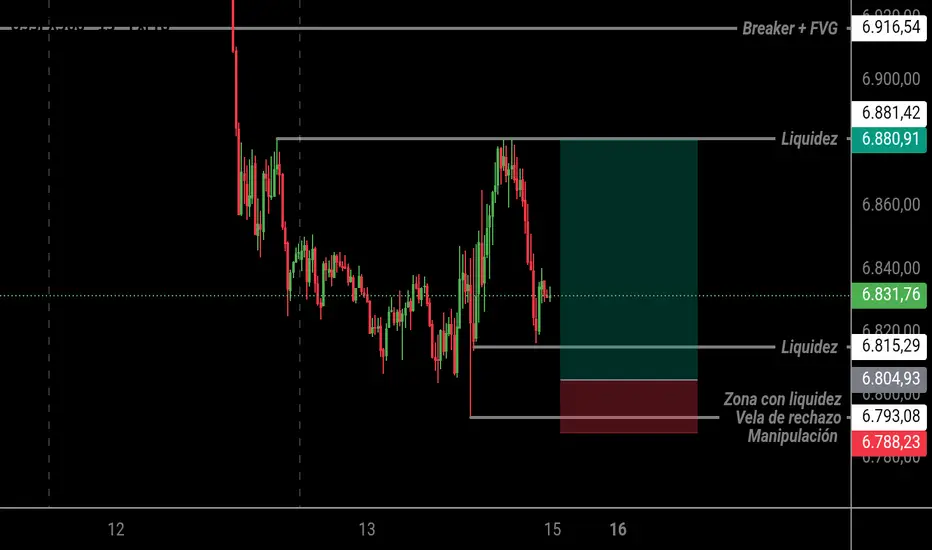 Si el precio respeta la vela de rechazo marcada podríamos ir a buscar compras después de tomar la liquidez previa para ir a buscar la liquidez que nos dejó con los últimos altos iguales