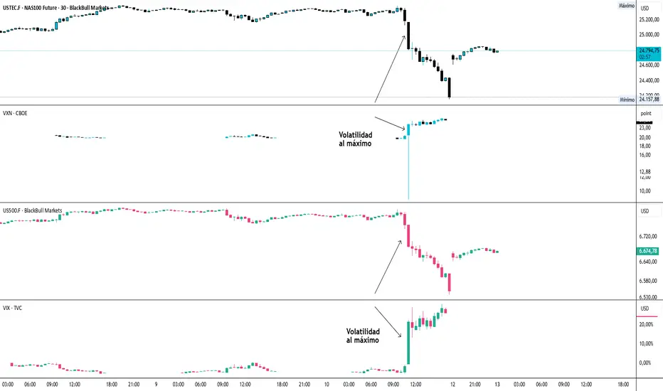 Entender la relación VIX–S&P 500 y VXN–Nasdaq es esencial: ambos suelen moverse en dirección opuesta a los precios, anticipando giros o confirmando fases de distribución y acumulación.