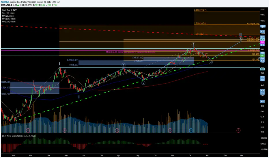 Parece que, de respetar la línea de tendencia alcista iniciada en enero de 2016, se podría dar por finalizada la corrección e iniciar una nueva etapa alcista hacia los U$S 10.53 (extensión 1.618 Fibonacci de la onda I).