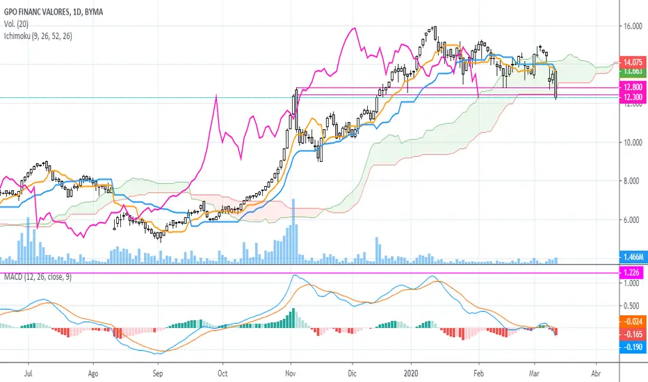 En visión diaria está perdiendo el último soporte relevante $12.8~$12.3