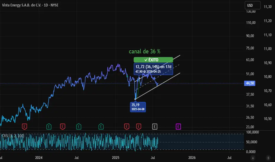 la segunda de hoy ,esta me parece media dudosa pero siempre sigue ruta ,a menos que alguna noticia la voltee , dentro de un canal de 36 %, con un rsi a la mitad , da salto amplio en poco tiempo chequen la info en pantalla
