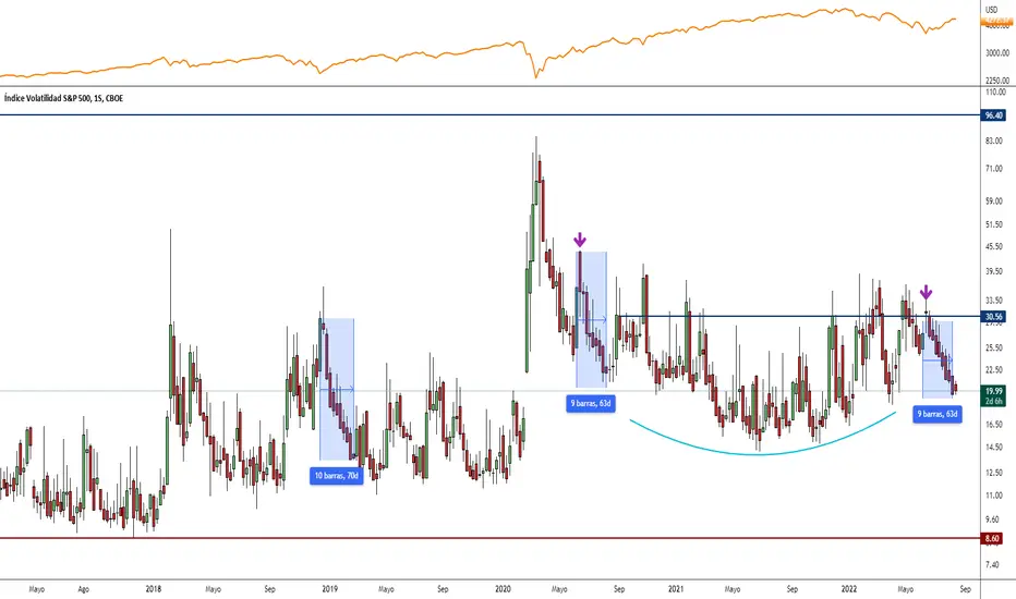 El índice de volatilidad del S&P 500, VIX, ya ha igualado la racha negativa más larga desde junio de 2020. Desde entonces no habíamos tenido una racha tan extendida de semanas cerrando en negativo. Si, cerrara esta semana de la misma forma, igualaría la racha de 10 semanas negativas consecutivas establecida entre diciembre de 2018 y febrero de 2019.