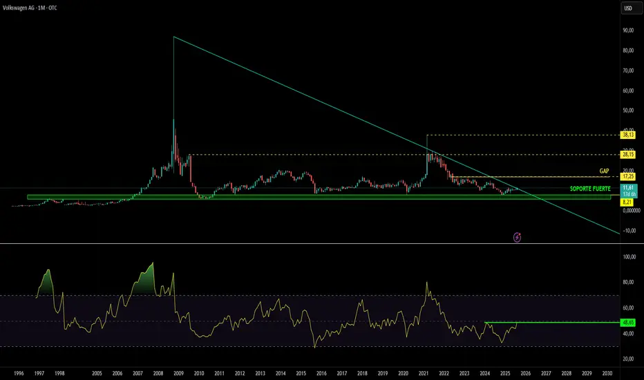 - Gráfico mensual de Volkswagen (cotiza en OTC).