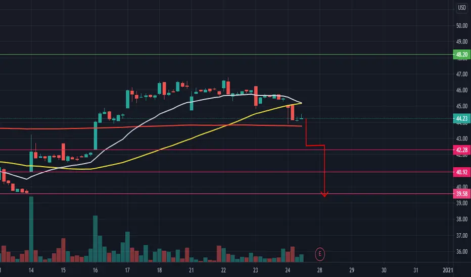 Venderé cerca de los 43,25 si el premercado no es muy agresivo, pero confirmando una caída ( un premercado cerca del -3 o -4% , nos confirmaría esa fuerza bajista que necesitamos)