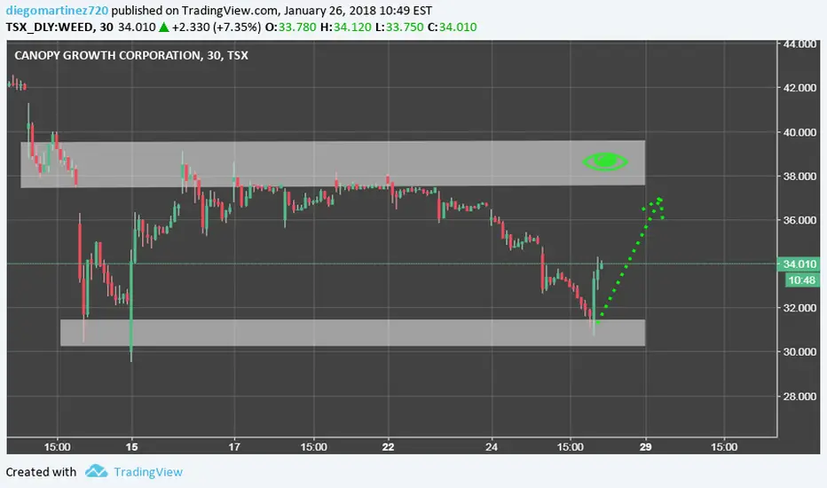Como vemos la empresa WEED experimenta un fuerte crecimiento rebotando en el soporte que vemos en el gráfico y posiblemente yendo a buscar los 37.00 o similar.