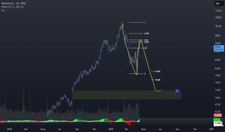 Curioso que WMT bajo en 5 ondas , reboto y ahora si hacemos una extensión el 100% del movimiento nos manda a cerrar el gap. Podríamos estar en un 5-3-5 en abc. De verse 5 ondas al alza anularíamos el escenario pero de otro modo la espero por los 75 - 73 usd para acumular. Quiere decir que aun no terminamos las correcciones del SPY?