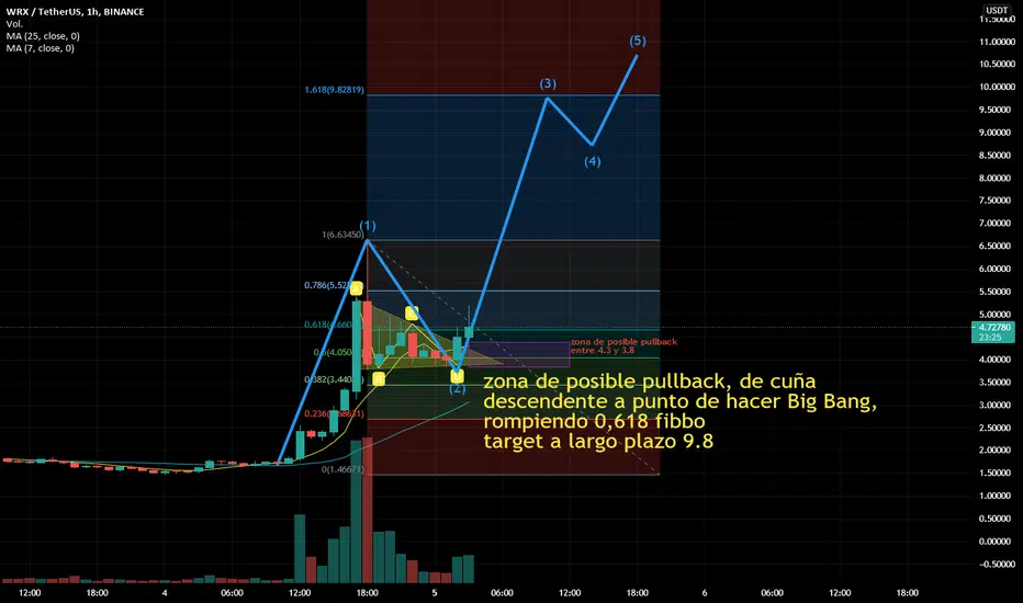 Buenos dias, los saluda DMOS, analisis de WRX, esta realizando a mi analisis, zona de posible pullback entre 4.3 y 3.8 de cuña