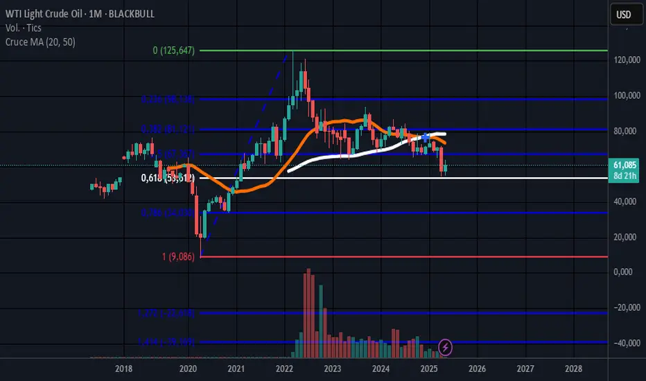 EL WTI tiene indicadores a la baja, y un fibo en 53 y otro por los 34, de mi parte tengo objetivo 45 dolares, ya que el crudo hace rato no puede superar ese 65, y es porque hay resistencias en esas zonas, lo cual si no rompe buscara soporte, de bajo de 53, tiene 45 y luego 34...trump quier energia barata, mas consumo, y exportar mas...y necesita que la guerra termine para cumplir lo que dijo...en su primer gobierno el crudo se movio entre 30 y 65 dolares...y yo creo que volvera hacer lo mismo...
