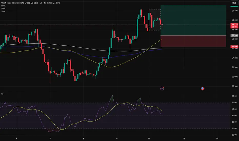 WTI remains below the 50-period moving average on the H4 chart, meaning the broader structure is still neutral to slightly bearish. However, price has recently shown a strong corrective rebound, supported by improving momentum.