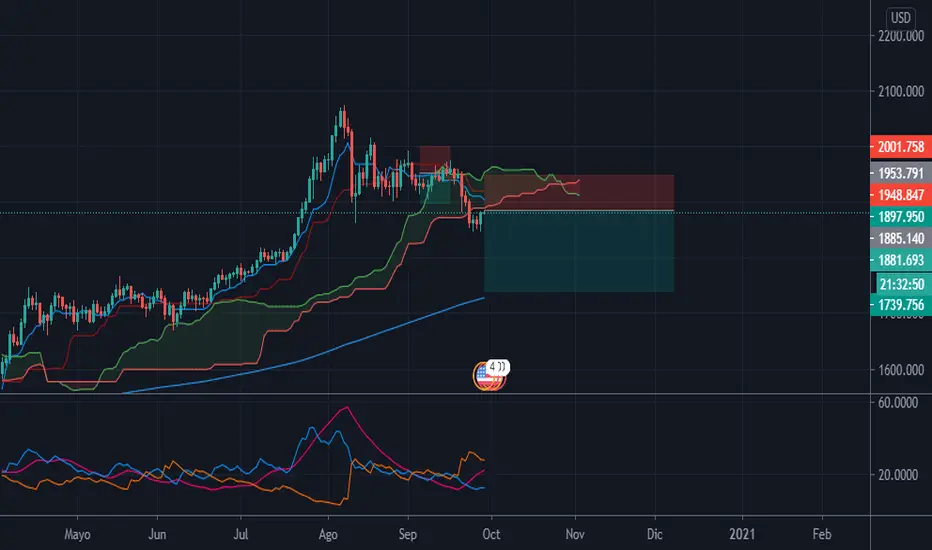 EL oro esta luchando contra el soporte de Kijum en gráficos diarios y parece que nos puede brindar la oportunidad para operarlo a la baja hasta la media de 200 a mediano plazo o simplemente hasta los 1.790 donde recomiendo realizar una toma de ganancias parciales para asegurar ganancias y reubicar el stop lost a breakeven.