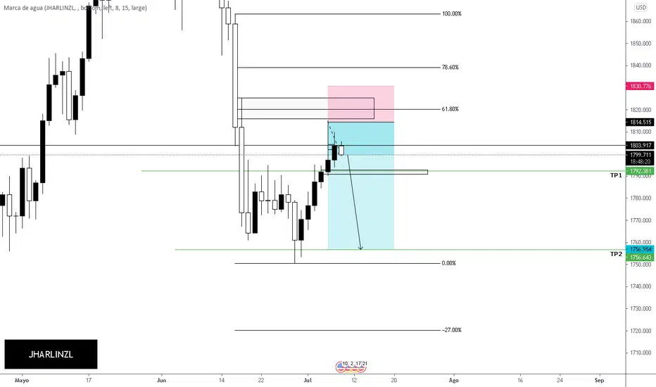 El precio se encuentra cayendo luego del retroceso que hizo y especulamos que haria en la pasada idea compartida, atinando asi un 80% del movimiento, Estamos a la espera que siga cayendo hasta el TP2, aunque siendo sinceros creo que se quedara a mitad de camino ya que estamos a mitad de semana, y el mercado no siempre se mueve mucho estos meses, pero no es un descarte tampoco.