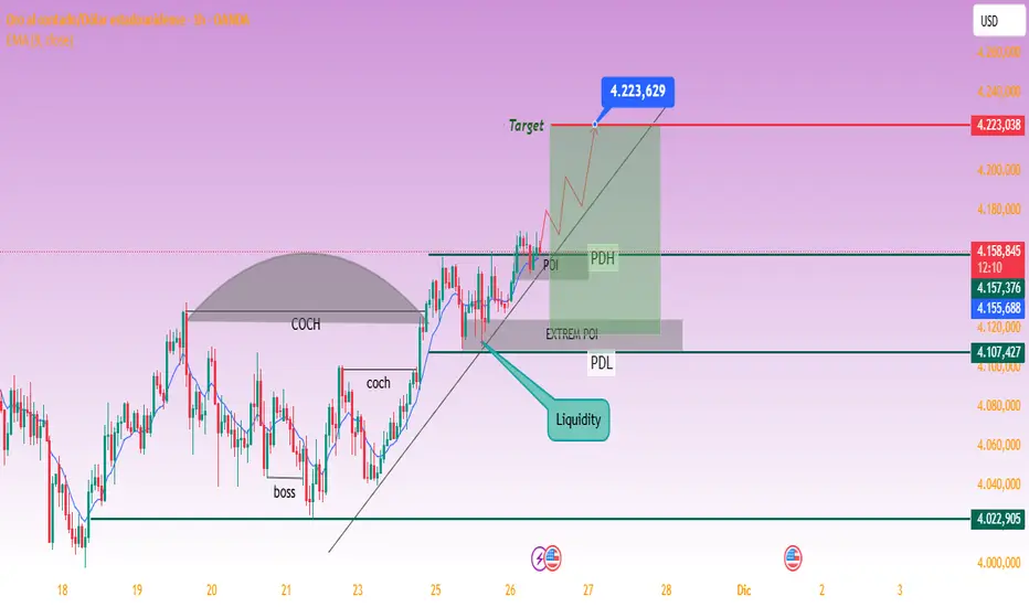 XAU/USD — Configuración de continuación alcista hacia 4.223 tras