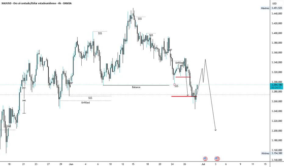 El oro Completa estructura micro, rebota en la zona planteada y concretamente, pretende una toma de liquidez dentro del último fractal para continuar al swing anterior.