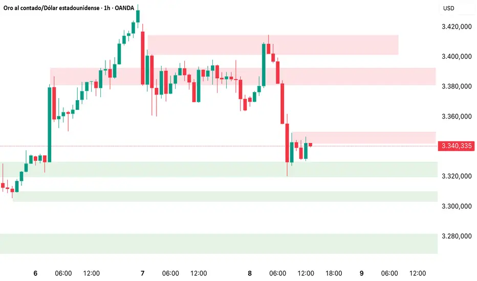 En temporalidad de 1 hora, que será la referencia para operar intradía, vamos a tener como referencia clave la resistencia en los 3382. Si el precio logra posicionarse por encima y recuperar los 3400, podría continuar al alza.