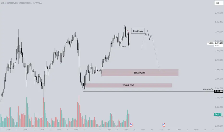 Tenemos que XAUUSD ha hecho un buen BOS con volumen en H1, habría que esperar a un esquema. Personalmente creo que llegará a la zona de liquidez superior para LND pero debido a que hay noticias, no se si se pueda adelantar para ASIA. Una vez mitigado la zona de liquidez hay que esperar quiebres en M15 para que así confirme la intención de corregir bajista hasta las zonas de oferta.
