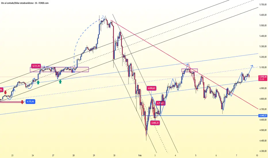 🔥 El mercado se comporta como se esperaba: un rebote volátil que aprovecha las oportunidades de swing trading en medio de las fluctuaciones. El precio actual se acerca al fuerte nivel de resistencia de 5100; esté atento al impulso de ruptura.