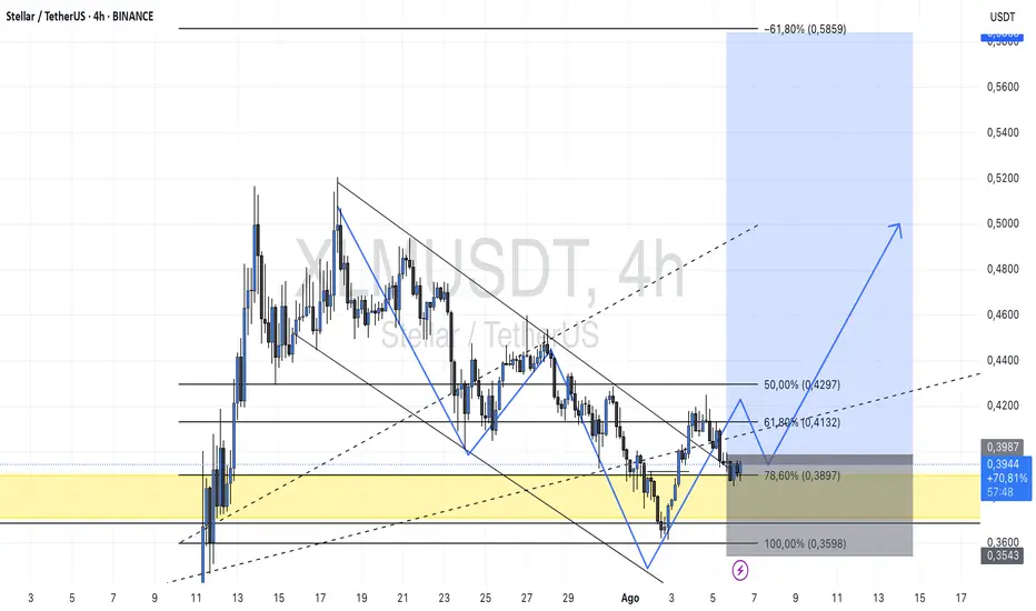 Se proyecta un impulso alcista respetando el 78,6% de fibonnacci, formando estructura alcista y rompiendo y canal bajista formando cambio de estructura hacia la alza.