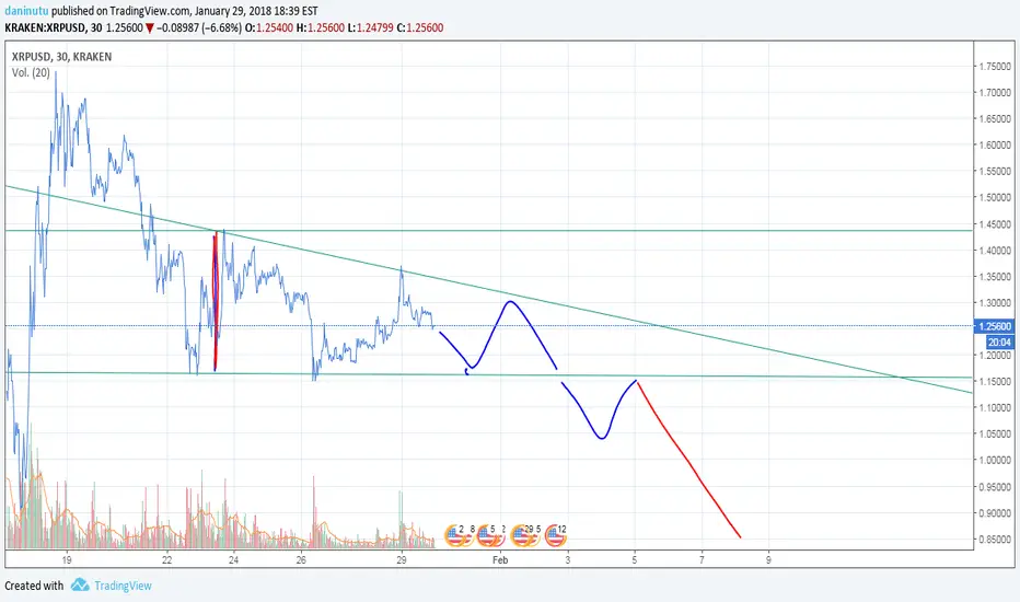 Solo es un posible escenario, no digo que pase esto, pero si se sigue ese patron, estaremos en una tendencia bajista del Ripple. Requisito necesario: picos cada vez mas bajos y rotura del punto de apoyo en 1.16