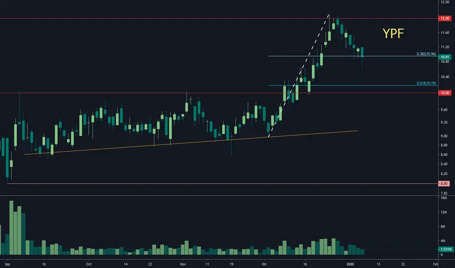 corrección o fin de salida alcista. Para seguir que hace en el fibo382, si no hace de soporte le baja mucho la probabilidad de cruzar los 12 en el corto.
