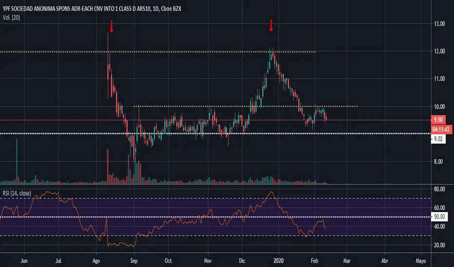 Ypf registro un alza hasta los 10usd, pero no pudo romper la resistencia. Ahora el precio se encuentra nuevamente bajando.