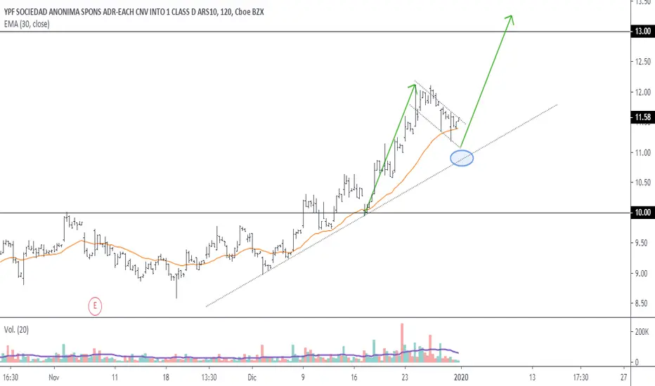 $YPF (2 horas) Bandera alcista en etapa de consolidación